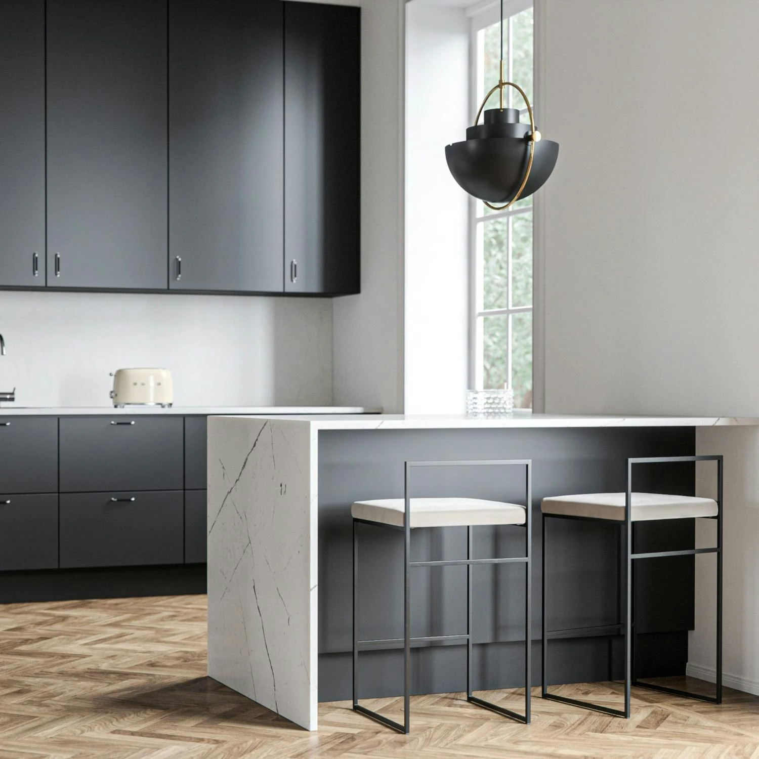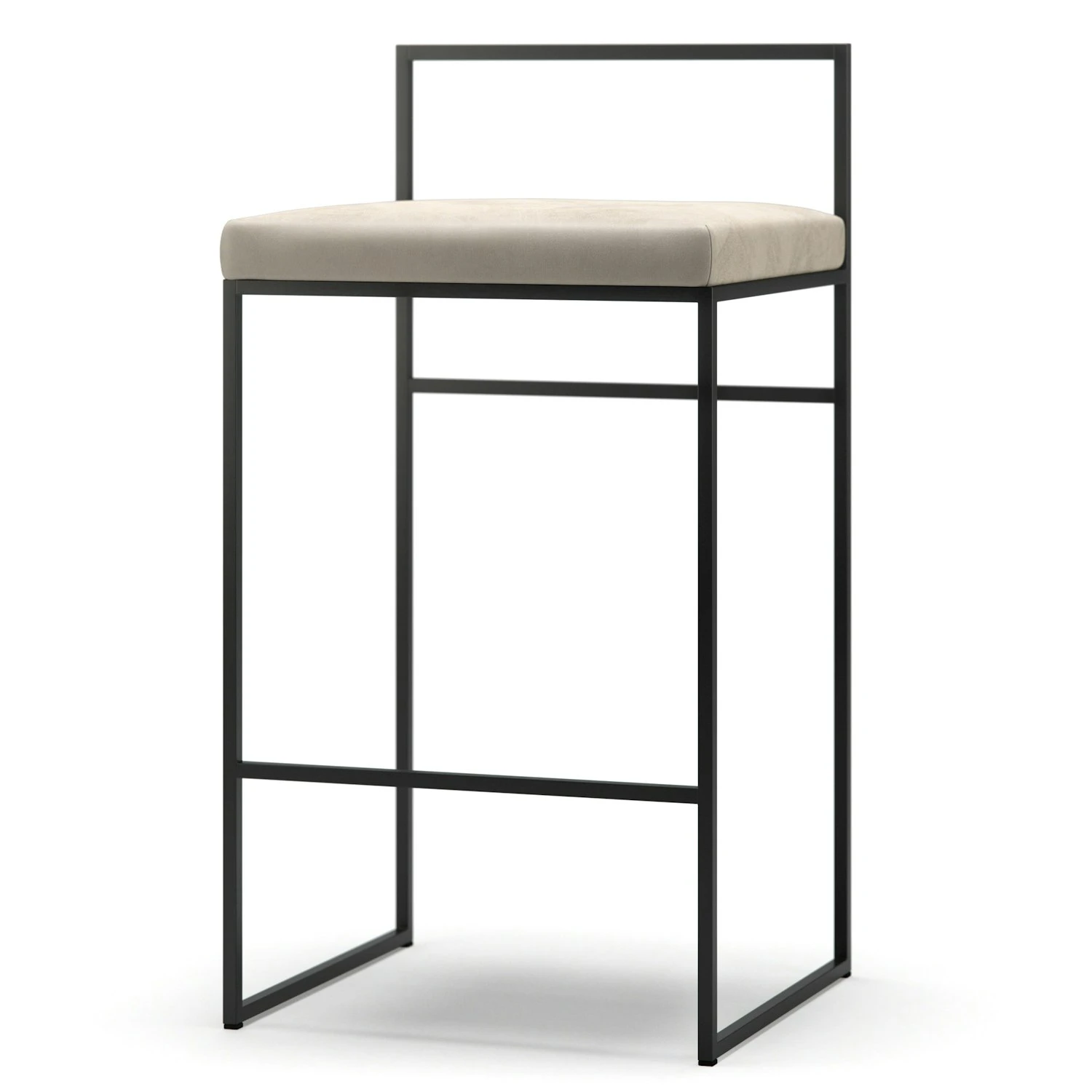 Barhocker Mit Rückenlehne 80 Cm, Schwarz / Beige Samt