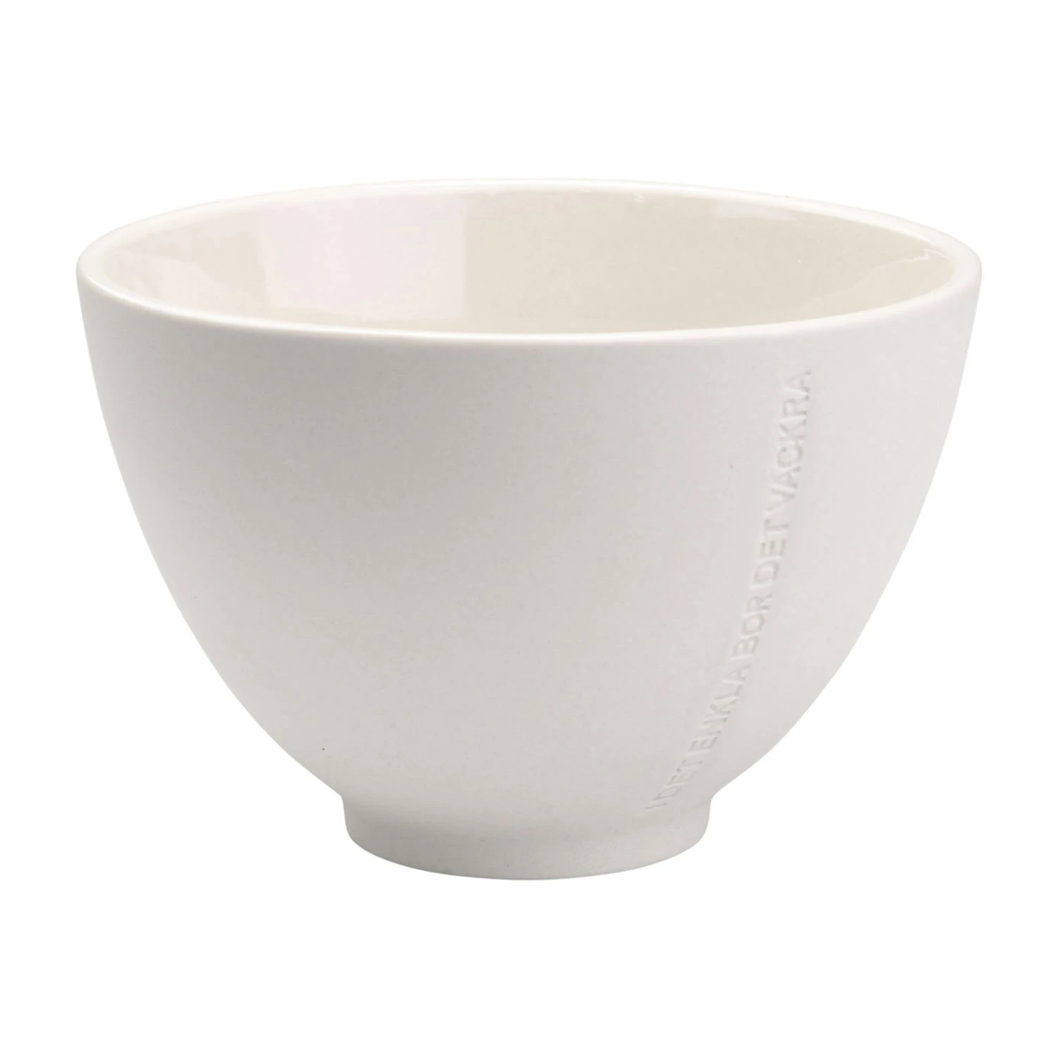 Schüssel von Ernst Kirchsteiger mit dem Zitat „I det enkla bor det vackra“. Dasselbe Zitat ist auf einer Vielzahl von Bechern, Krügen und Schalen von Ernst vermerkt. Mit dieser einfachen Steinzeugschüssel in wunderschönen, stumpfen Farben kannst du deinem Zuhause einen zusätzlichen gemütlichen Faktor verleihen.