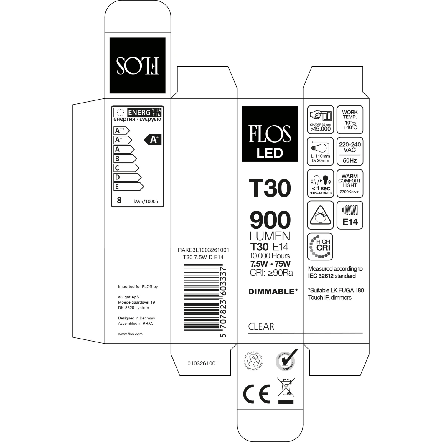Flos RAKE3L1003261001 LED E14 T30 7.5W 900lm Proxima 2700K Dimmable