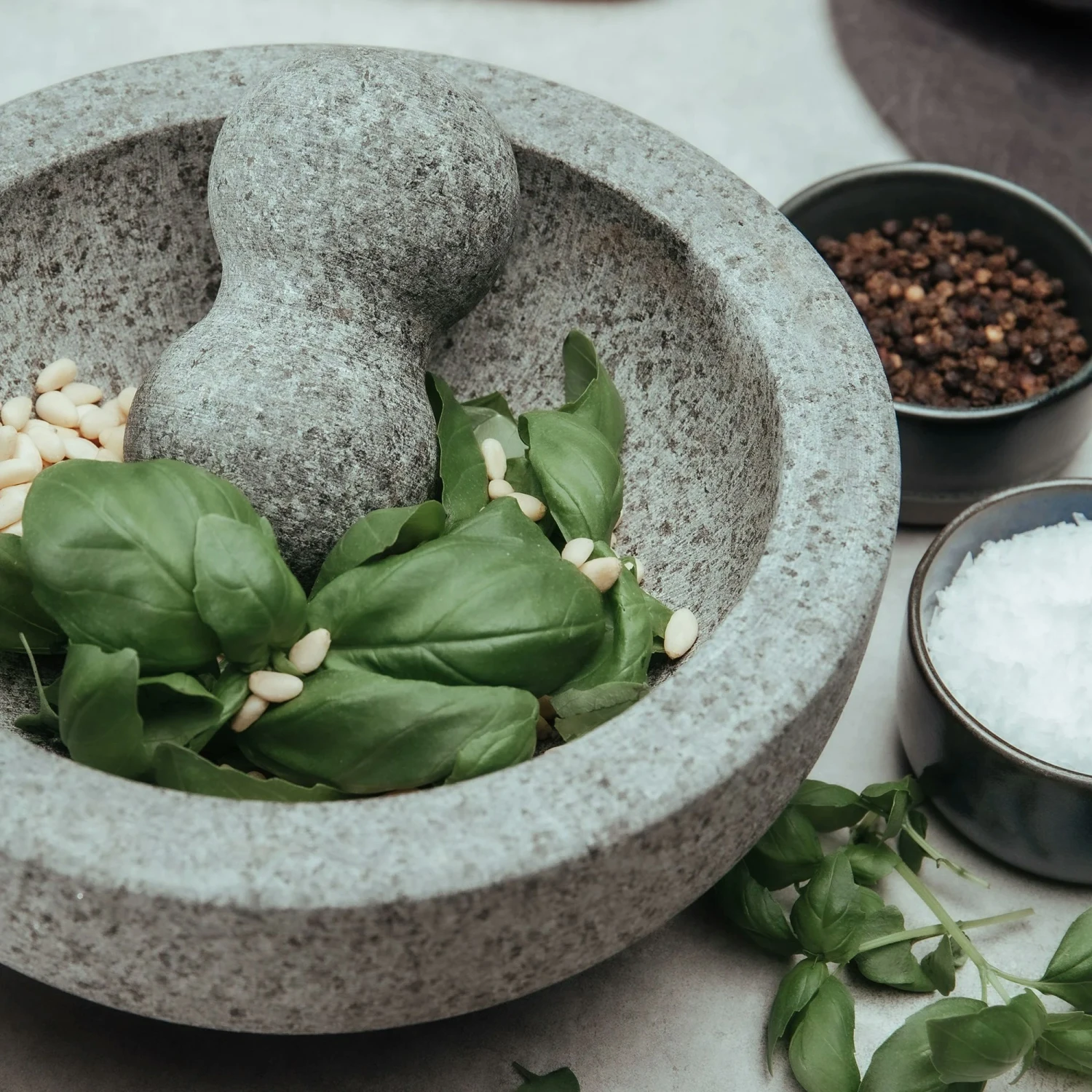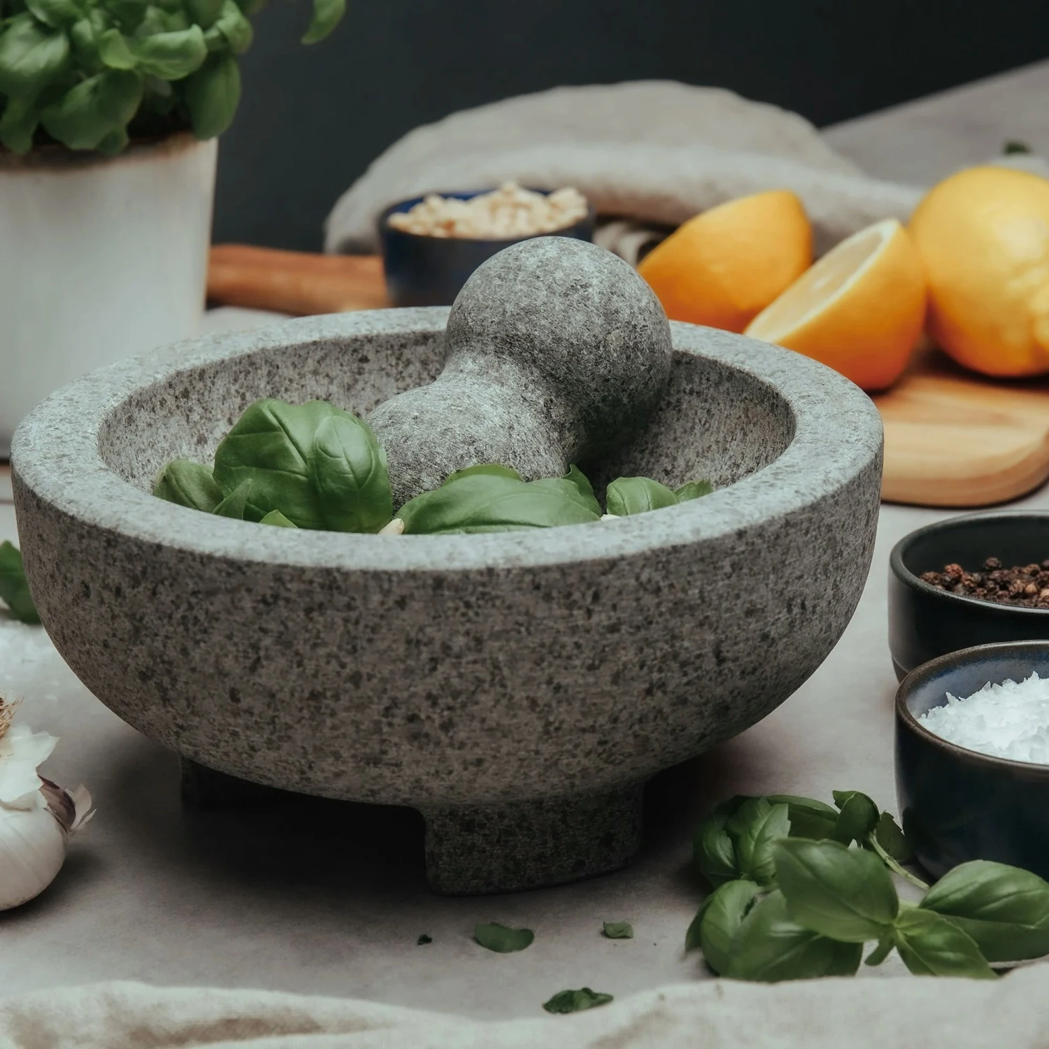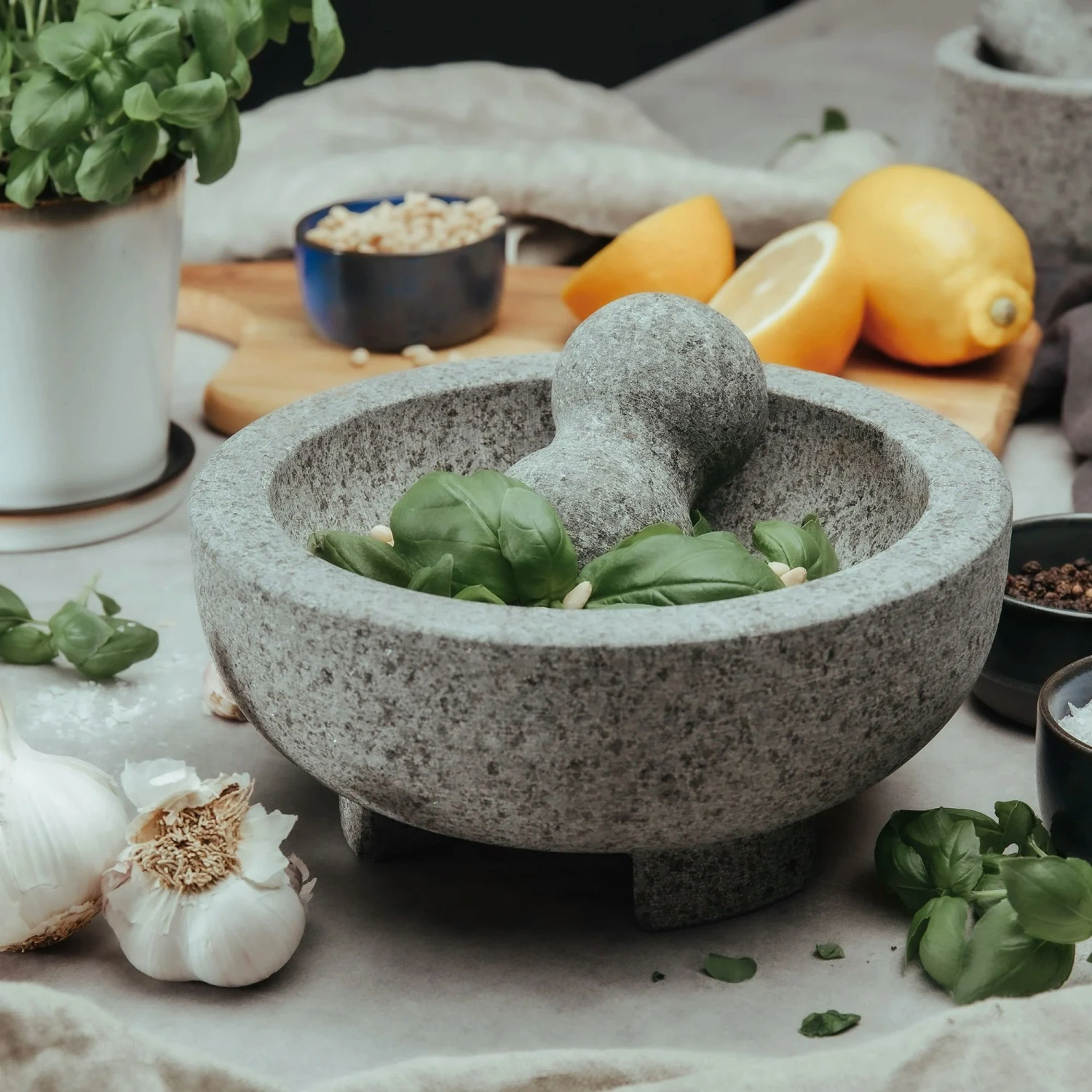 Der Mörser von Mareld hat ein langlebiges Design aus Granit mit einer eleganten Optik perfekt für Gewürze und Kräuter.