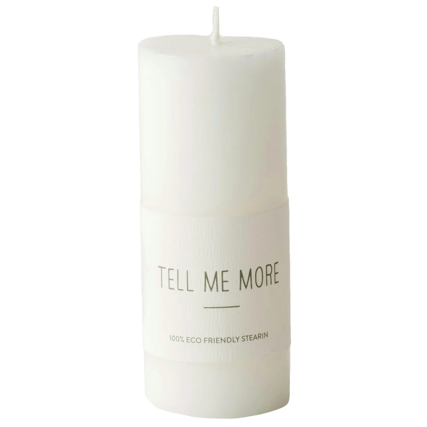 Die Stumpenkerze von Tell Me More ist hergestellt aus 100% Stearinwachs mit einer langen Brenndauer perfekt um in jedem Raum eine gemütliche Atmosphäre zu schaffen.